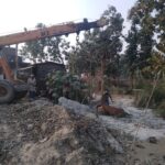 कीचड़ भरे गड्ढे में फंसा पशु, क्रेन की मदद से बचाई गई जान