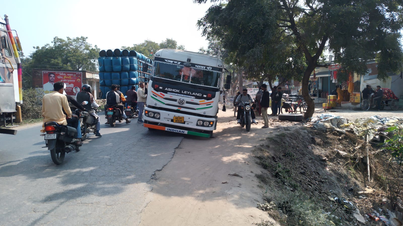 गाजीपुर-भरौली मार्ग पर ट्रेलर का टायर फटा, घंटों से थमी वाहनों की रफ्तार