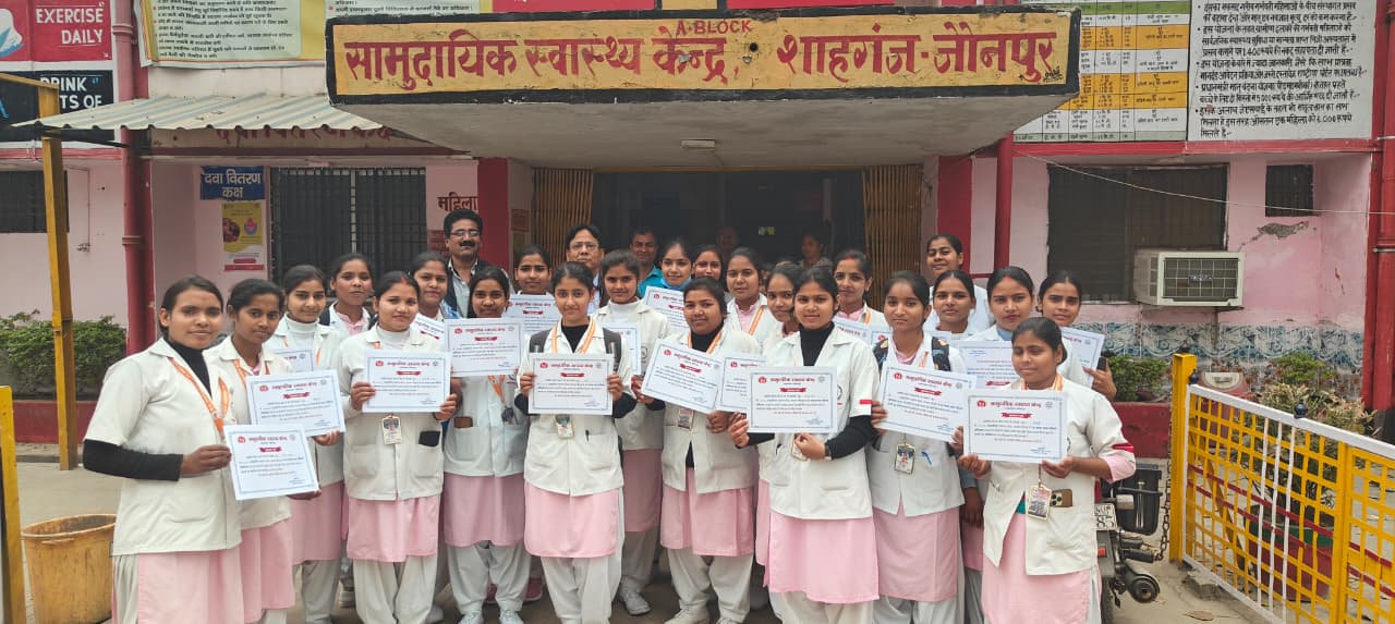 उल्लेखनीय सहयोग देने के लिए आर.के. इंस्टीट्यूट ऑफ नर्सिंग, शाहगंज की छात्राओं को किया गया सम्मानित