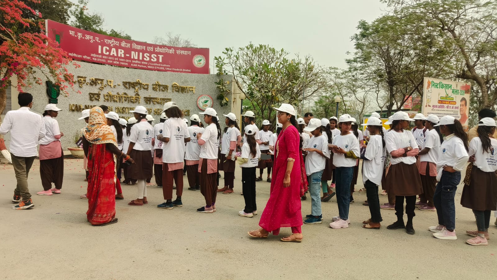 मऊ: शारदा नारायन हॉस्पिटल के चेयरमैन डा. संजय सिंह ने प्राथमिक स्कूल के बच्चों संग केक काटकर खुशिया.