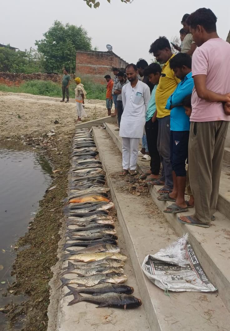 ताजपुर शिव मंदिर पोखरे में बड़ी संख्या में मरी मिलीं मछलियां, ग्रामीणों में चिंता
