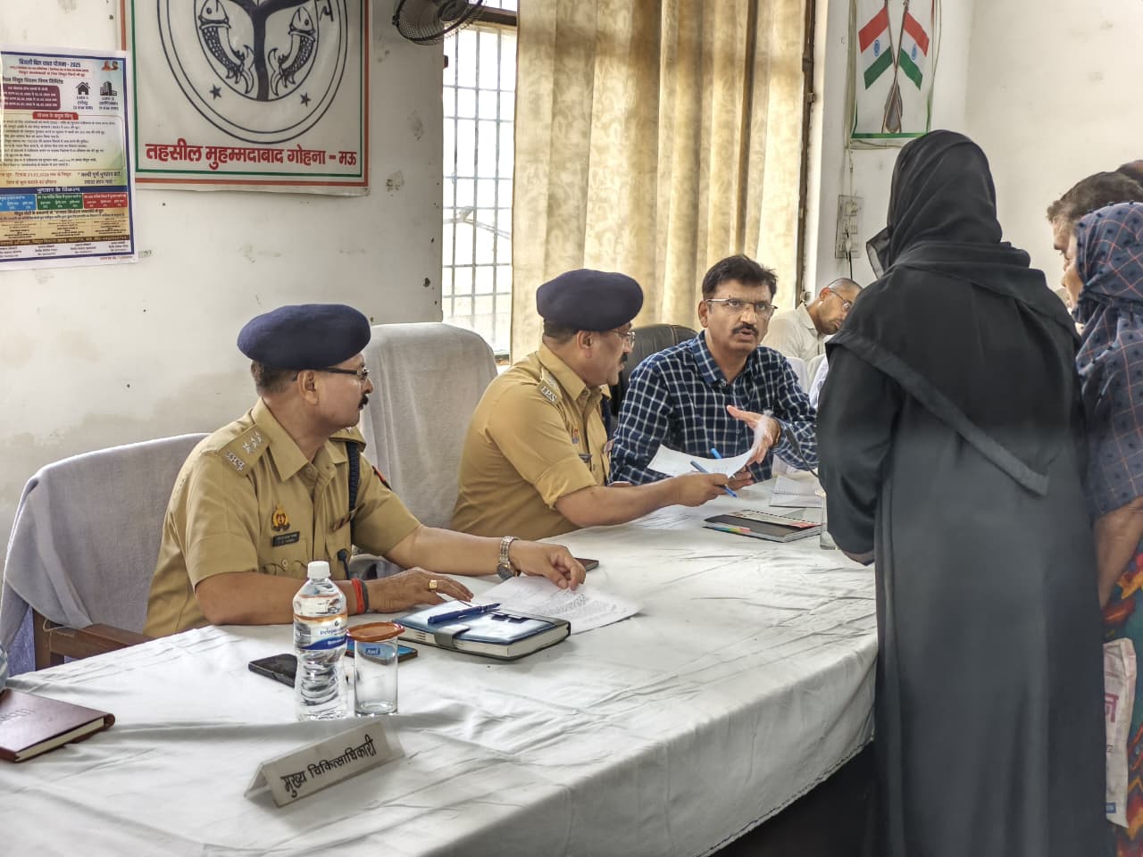 तहसील मुहम्मदाबाद गोहना में आज सम्पूर्ण समाधान दिवस का आयोजन किया गया, जिसमें जिलाधिकारी मऊ प्रवीण मिश्र एवं पुलिस अधीक्षक मऊ कमलेश बहादुर ने संयुक्त रूप से फरियादियों की समस्याओं को गंभीरतापूर्वक सुना तथा संबंधित अधिकारियों को त्वरित निस्तारण के कड़े निर्देश दिए।