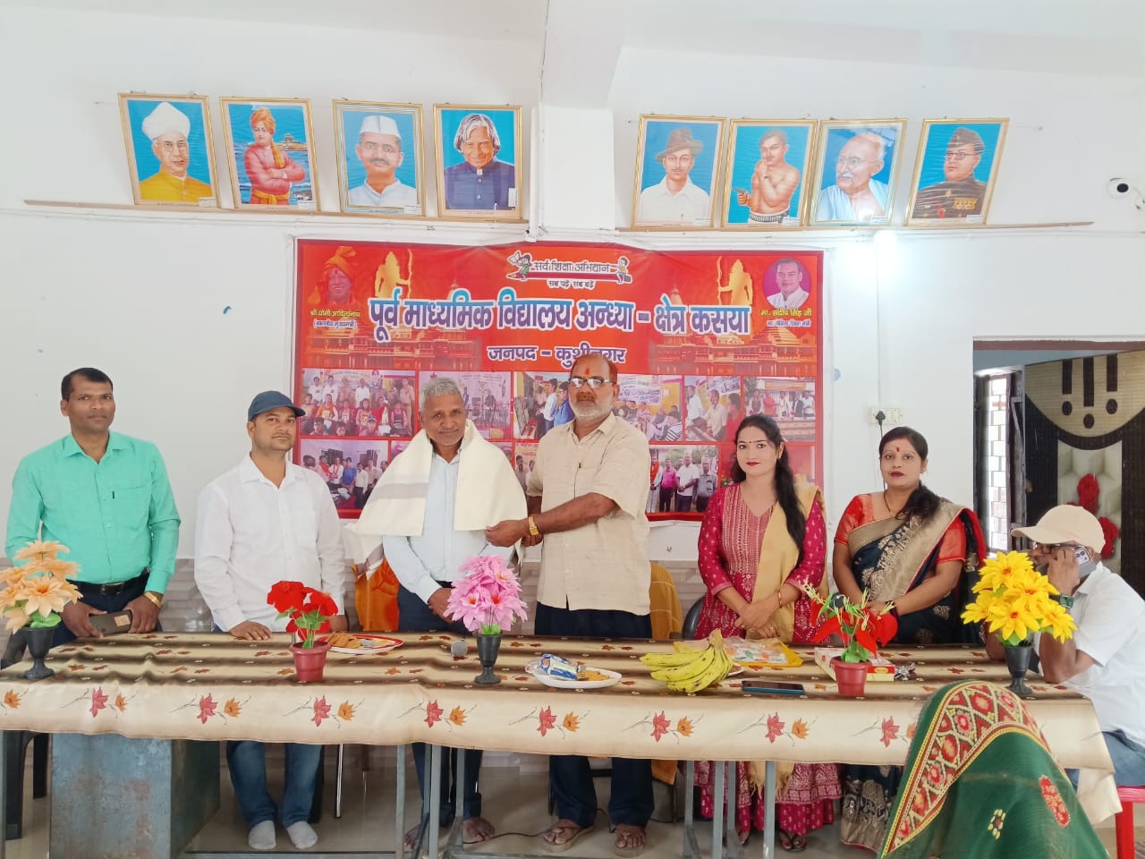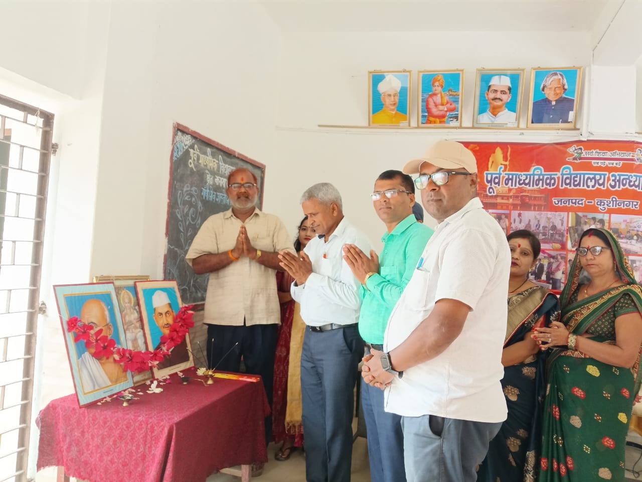 तहसील कसया अंतरगत पूर्व माध्यमिक विद्यालय आंधया के प्रांगण में गांधी जी व शास्त्री जी की जयंती मनाई गई l उक्त कार्यक्रम के मुख्य अतिथि खंड शिक्षा अधिकारी कसया अशोक कुमार यादव रहे l कार्यक्रम का शुभारम्भ गांधी जी व शास्त्री जी के चित्रों पर पुष्प और माला अर्पित कर किया गया l कार्यक्रम को सम्बोधित करते हुए मुख्य अतिथि खंड शिक्षा अधिकारी कसया अशोक कुमार यादव ने कहा कि आज 2 अक्टूबर है आज के तारीख में हमारे देश में दो महापुरुष मोहनदास करम चंद गांधी औऱ दूसरे लाल बहादुर शास्त्री जी का जन्म हुआ था l दोनों लोग अहिंसा और सादगी के प्रतीक थे l आज पूरा राष्ट्र इनके जन्म दिवस के साथ-साथ विजयादशमी के महापर्व को भी मना रहा है l आज ही के दिन भगवान राम ने रावन का वध किया था देश के आजादी में गांधी जी और शास्त्री जी की अहम भूमिका रही जिसके वज़ह से पूरा राष्ट्र गांधी ज़ी और शास्त्री ज़ी के जन्म-दिन को राष्ट्रीय पर्व के रूप में मानता है l कार्यक्रम का संचालन व आभार प्रधानाध्यापक शैलेश कुमार त्रिपाठी द्वारा किया गया lइस अवसर पर अजय कुमार, सत्येंद्र कुमार, विजय कुमार गुप्ता, सपना शर्मा, रागिनी पांडेय, कांति गुप्ता मनीषा यादव के अलावा रसोईया इतवारीदेवी, और राबड़ी देवी, मुख्य रूप से उपस्थित रही l