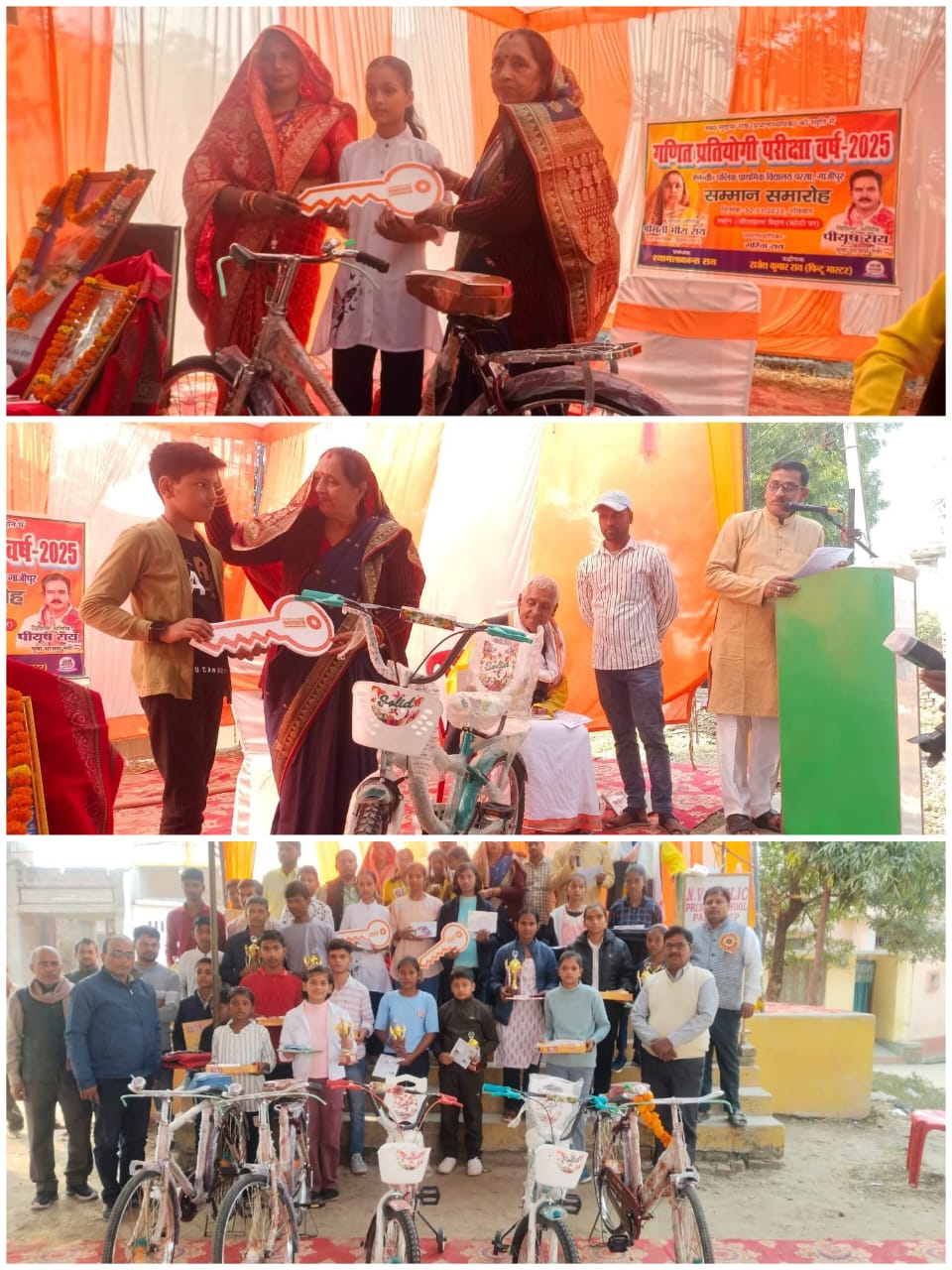 इस प्रतियोगिता में अलग-अलग कक्षाओं के चार वर्गों में बाटा गया था, जिसमें छात्रा प्रिया गुप्ता, आस्था यादव, अंशिका वर्मा, ओजस राय ने अपने वर्गों में सर्वाधिक अंक पाकर टाप किया। टापर विजेताओं को मुख्य अतिथि समाजसेवी मीरा राय ने साइकिल व प्रशस्ति पत्र देकर सम्मानित किया। अन्य कुल 27 छात्रों में द्वितीय, तृतीय एवं सांत्वना सहित विशेष पुरस्कार से सम्मानित किया गया।