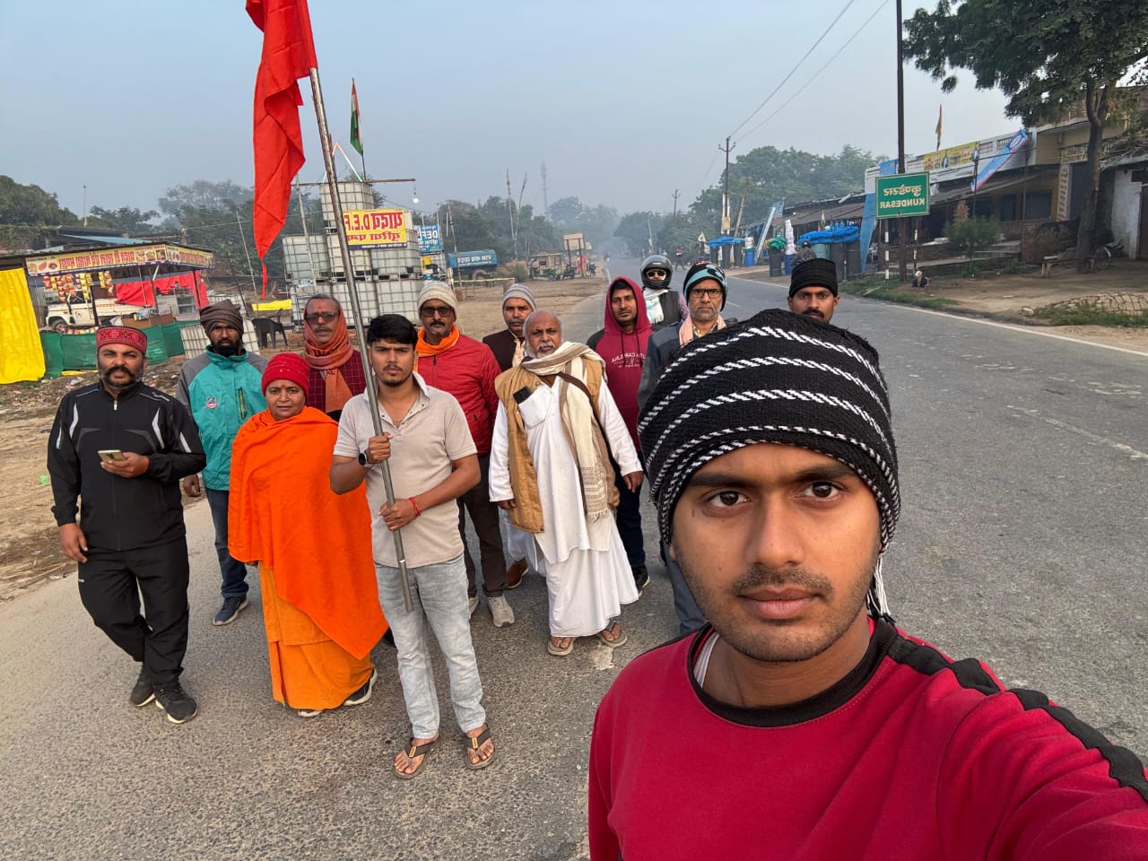 भांवरकोल खंड में सत्यम शर्मा जी द्वारा भगवा ध्वज को मिथिलेश राय जी को सौंपा गया। उनके पीछे साध्वी सुमन दीदी के साथ कुबेर नाथ पांडेय, शशांक शेखर राय, अमन, राहुल, हरिमोहन, देवेंद्र, श्रीनिवास, विजय सहित अनेक श्रद्धालु “भारत माता की जय” के जयघोष के साथ पदयात्रा में सहभागी बने।