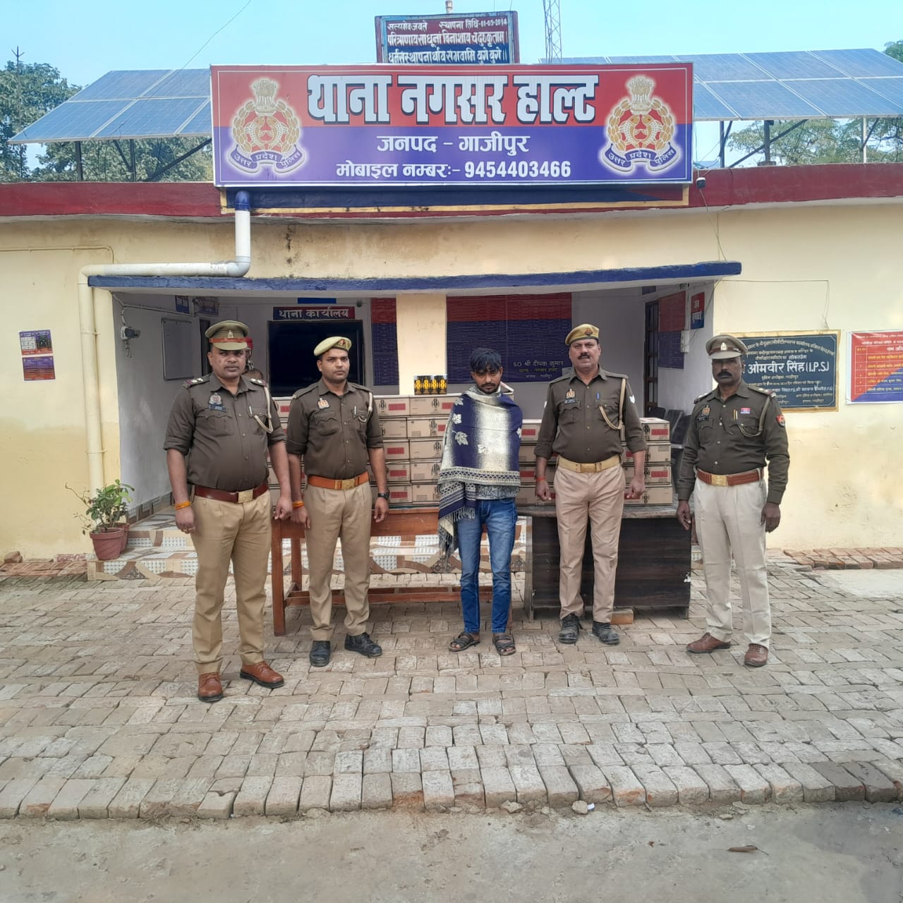 नगसर । स्थानीय थाना पुलिस को बीते सोमवार की देर रात्रि को बडी कामयाबी मिली है,पुलिस ने वाहन चेकिंग के दौरान सूर्यभानपुर नहर पुलिया ने समीप से मऊ नंम्बर की एक मैजिक से दो लाख 13 हजार की 37 पेटी 180 एम एल की 8 P M अंग्रेज़ी शराब ( 319 लीटर) को बरामद किया है । पुलिस ने इसके अलावा एक अंतरप्रांतीय शराब तस्कर शमशाद अंसारी निवासी अरारूआ थाना करगहा जिला रोहतास बिहार को दबोचा,पुलिस शराबसे लदी मैजिक सहित दबोचे गये शराब तस्कर को थाने लेकर चली आई ,जहाँ आज मंगलवार को तस्कर से पूछताछ के बाद उसके खिलाफ मुकदमा दर्ज कर उसका चालान कर कोर्ट में पेश किया,जहाँ से कोर्ट ने आरोपी को चौदह दिनों की न्यायिक हिरासत में जिला कारागार भेंज दिया।पुलिस ने इसके बाद बरामद शराब को सील करने के साथ ही वाहन को भी सीज कर दिया,और पूरे मामलें की छानबीन में जुट गई, थानाध्यक्ष ओमप्रकाश ने बताया कि वह अपनी टीम के साथ खडवल सूर्यभानपुर मार्ग पर बीते सोमवार की देर रात्रि को वाहनों की चेकिंग कर रहे थे,कि इसी दौरान नगसर की ओर से एक तेज रफ्तार मैजिक आता दिखा।