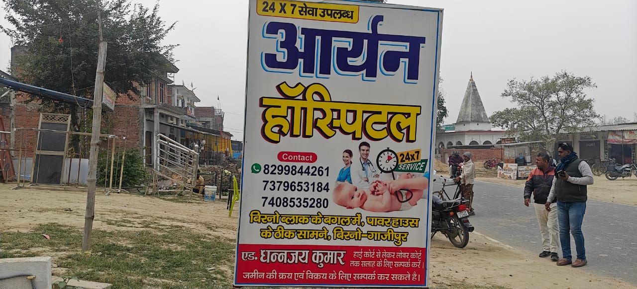 मामले में एक और चौंकाने वाला तथ्य सामने आया है। स्थानीय लोगों का कहना है कि आर्यन हॉस्पिटल के बाहर लगे बोर्ड पर किसी भी डॉक्टर का नाम दर्ज नहीं है। इसके बजाय वहां हाईकोर्ट-सुप्रीम कोर्ट से जुड़े मामलों और जमीन खरीद-बिक्री से संबंधित संपर्क नंबरों के इश्तेहार चस्पा हैं।