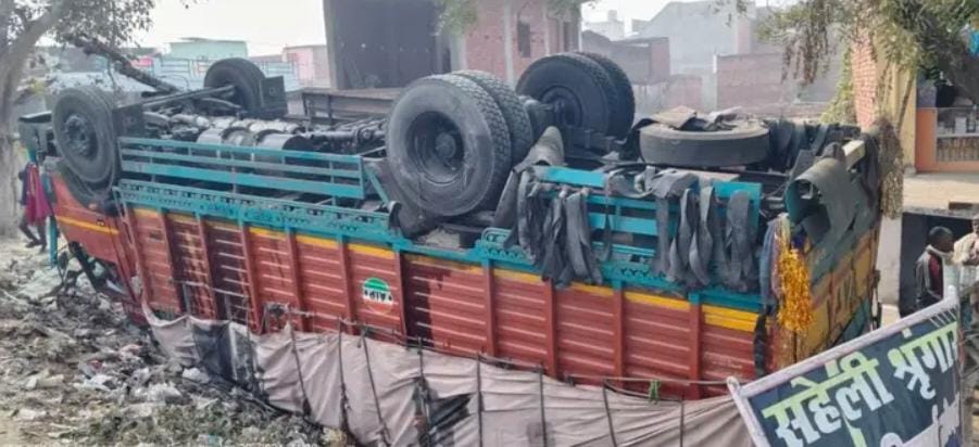 एनएच-31 पर अर्धरात्रि बड़ा हादसा, सूखी मछली लदा आइशर वाहन पलटा