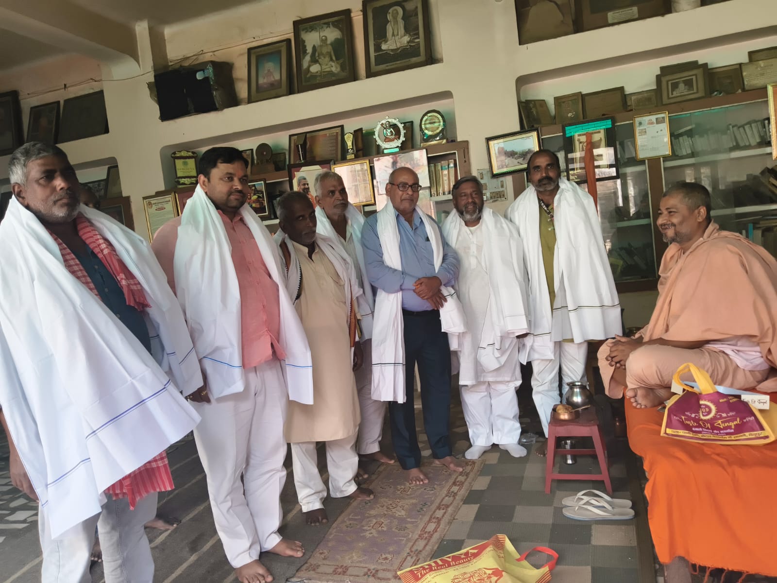 शिवाला घाट राजगुरु मठ पहुंचने पर ग्रामवासियों को विधिवत भोजन इत्यादि करते हुए गुरु महाराज की तरफ से अंगवस्त्रम देकर सम्मानित भी किया गया।