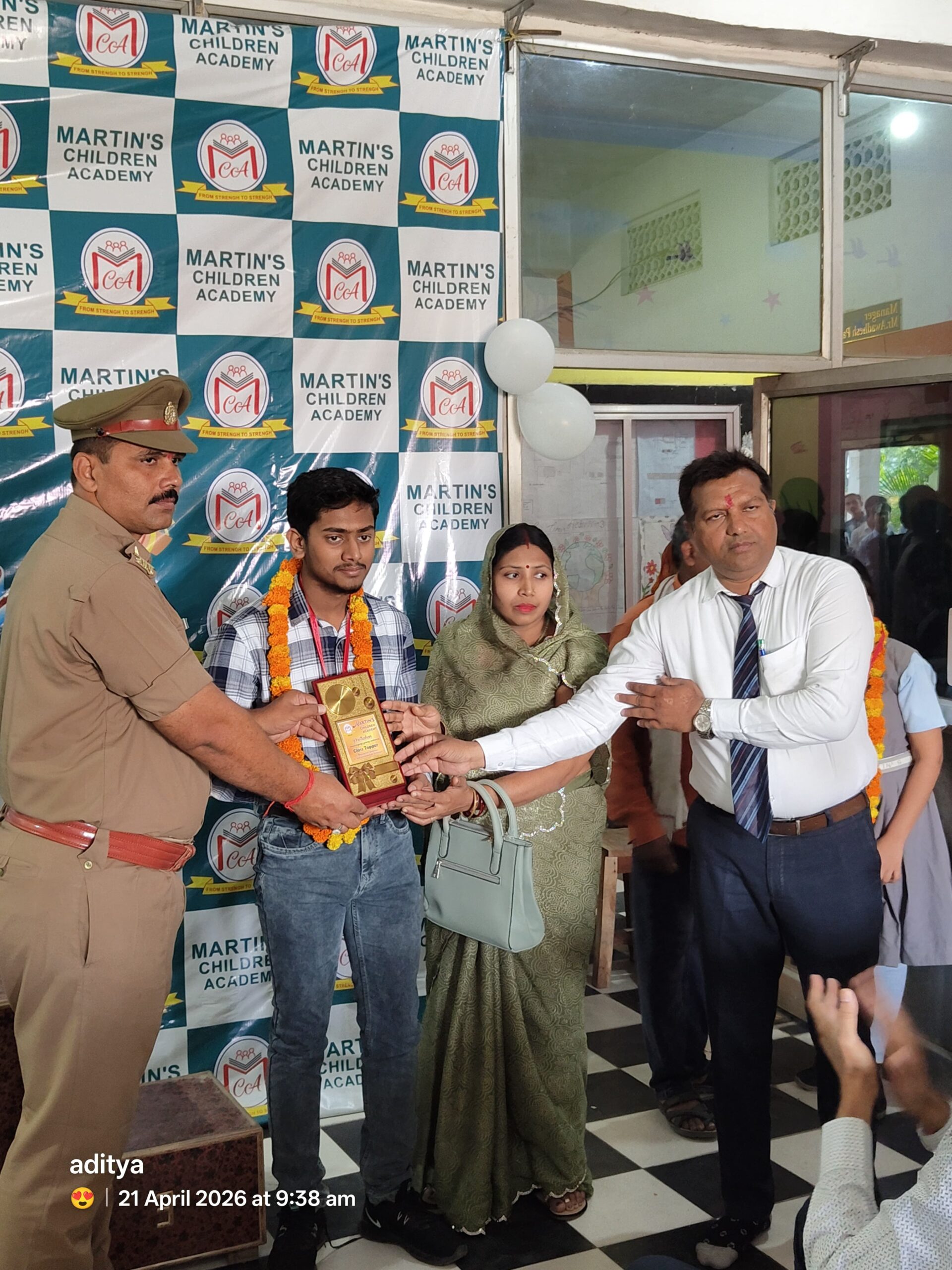 भांवरकोल( गाजीपुर)। क्षेत्र के मार्टिन्स चिल्ड्रेन एकेडमी पर एक समारोह का आयोजन कर विद्यालय की नर्सरी से कक्षा 10 वीं के सीबीएसई बोर्ड तक के सम्मानजनक अंक प्राप्त कर उत्तीर्ण होने वाले बच्चों को विद्यालय प्रशासन द्वारा निर्धारित मेडल तथा स्मृति चिन्ह देकर सम्मानित किया गया। कार्यक्रम का शुभारंभ थानाध्यक्ष संतोष कुमार राय ने दीप प्रज्वलित कर किया। विद्यालय के प्रबंधक अवधेश पांडेय ने अंग वस्त्रम से मुख्य अतिथि एस ओ संतोष कुमार राय का सम्मान किया। विद्यालय की महिला शिक्षक अंजू राय द्वारा स्वागत गीत प्रस्तुत कर आए हुए अतिथियों का स्वागत किया गया। अपने उद्बोधन में थानाध्यक्ष राय ने कहा कि शिक्षक गुरु के साथ-साथ अभिभावक और माता-पिता की भूमिका में भी बच्चों की देखरेख करता है। उन्होंने कहा कि बच्चों में सद्गुण एवं संस्कार पैदा करने की सर्वाधिक जिम्मेदारी माता-पिता और शिक्षक की भी होती है। बच्चों में सीखने की प्रवृत्ति होती है समाज में वह जैसा देखेगा उसके मस्तिष्क पटल पर उसी की छाप पड़ेगी इसलिए हम सभी को चाहिए की बच्चों की संगति पर विशेष ध्यान रखें। विद्यालय में शिक्षक तथा घर पर माता-पिता के साथ स्वजन का बच्चों द्वारा किए जा रहे क्रियाकलापों पर विशेष ध्यान दिया जाना चाहिए। इस अवसर पर सीबीएसई बोर्ड संचालित हाई स्कूल परीक्षा इस विद्यालय के टॉप 10 की सूची में सम्मिलित शिवांगी राय आलिया खान कीर्तिमान राय संजना कुशवाहा तथा अनंत गुप्ता सहित सभी बच्चों को मेडल एवं स्मृति चिन्ह देकर पुरस्कृत करने के अलावा विद्यालय की नर्सरी सहित अन्य सभी कक्षाओं में प्रथम द्वितीय एवं तृतीय स्थान प्राप्त करने वाले सभी 55 छात्र-छात्राओं को मेडल देकर मुख्य अतिथि एस ओ संतोष कुमार राय , प्रबंधक पप्पू पांडे तथा प्रधानाचार्य डॉक्टर ब्रजेश कुमार ने पुरस्कृत किया। प्रधानाचार्य डॉक्टर ब्रजेश कुमार ने शिक्षा के साथ-साथ भारतीय संस्कृति एवं संस्कार की आवश्यकता पर बल देते हुए कहा कि केवल किताबी ज्ञान से व्यक्ति का सर्वांगीण विकास नहीं हो सकता उसे समाज में सम्मानजनक जीवन जीने के लिए शिक्षा के साथ-साथ संस्कार की भी आवश्यकता होती है, जो उसे परिवार एवं समाज के बड़े बुजुर्ग लोगों से प्राप्त होती है। लक्ष्य को प्राप्त करने के लिए सार्थक प्रयास व्यक्ति को आगे बढ़ाने में मदद मिलती है । इस अवसर पर विद्यालय के प्रबंधक अवधेश पांडेय, प्रधानाचार्य डॉ० ब्रजेश कुमार, उप प्रधानाचार्य मनोज प्रजापति ,मृत्युंजय राय, यासमीन सिद्दीकी तथा कृष्ण वर्मा के अलावा प्रिया राय अनीता पांडेय जयप्रकाश राय सुनील राय सहित काफी संख्या में अभिभावक एवं गणमान्य व्यक्ति उपस्थित रहे। कार्यक्रम का संचालन विद्यालय के वरिष्ठ शिक्षक भ