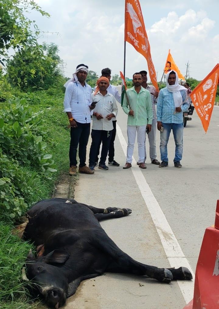 गाजीपुर: जंगीपुर में एक मृत गोवंश 24 घंटे से अधिक समय तक हाईवे पर लावारिस हालत में पड़ा रहा। प्रशासन को अवगत कराने के बाद भी अधिकारी हरकत में नहीं आए, जिसके बाद राष्ट्रीय बजरंग दल ने अधिकारियों के खिलाफ हाईवे पर चक्का जाम किया।