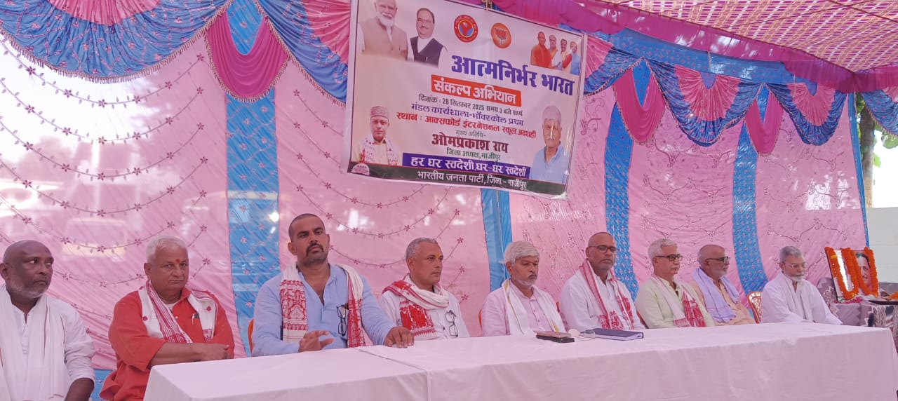 कार्यक्रम के मुख्य वक्ता जिलाध्यक्ष ओमप्रकाश राय ने सर्वप्रथम कार्यकर्ताओं का उपस्थिति वृत्त लिया उसके बाद शशक्त भारत की छवि पर प्रकाश डालते हुए बताया कि कैसे अपने देश के यशस्वी प्रधानमंत्री आदरणीय नरेन्द्र मोदी जी के नेतृत्व में देश कैसे आगे बढ़ रहा है , उन्होंने कार्यक्रम के बारे में बताया कि प्रधानमंत्री जी ने स्वदेशी की परिभाषा बदल दी है जिसमें स्वदेशी से तात्पर्य भारत मे बनने वाले समान जिसमे भारत के कारीगर मजदूर लगते हैं अर्थात भारत मे असेम्बल्ड ( निर्मित ) विदेशी समान भी स्वदेशी की श्रेणी में आएगा । आत्मनिर्भर भारत व स्वदेशी का कार्यक्रम 25 सितम्बर से 25 दिसंबर तक चलेगा । विभिन्न प्रकार के कार्यक्रम प्रदेश , जिले व मण्डल स्तर तक होंगे । उन्होंने कार्यकर्ताओं में जोश भरते हुए कहा कि रात 12 बजे रात में भी मेरे कार्यकर्ता याद करेंगे मैं उनके मान सम्मान के लिए मैं गाजीपुर के किसी भी विभाग के अधिकारी को तुरन्त छुट्टी करा दूंगा , मैं मुख्यमंत्री जी से मिलकर आया हूँ और उन्होंने ने मुझे ये कहकर भेजा है । निवर्तमान मण्डल अध्यक्ष शशांक शेखर राय ने भी पार्टी के आगामी विभिन्न करणीय कार्यो पर प्रकाश डाला । कार्यक्रम का समापन राष्ट्रगान के साथ किया गया ।