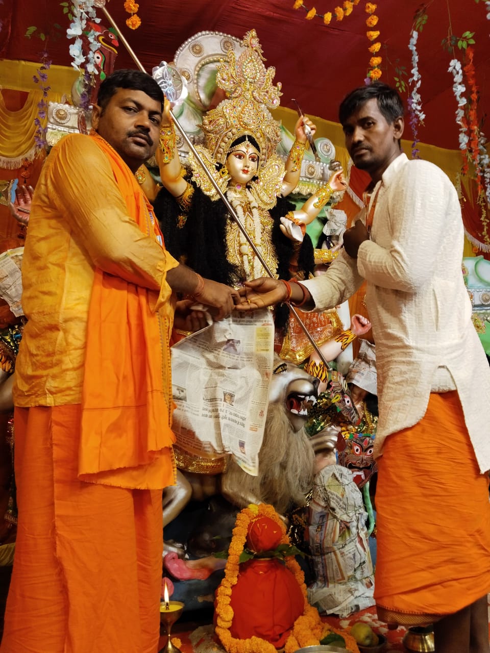 पूजा पंडालों को आकर्षक ढंग से सजाया गया है। विद्युत झालरों की झिलमिलाहट और देवी गीतों की मधुर धुन ने पूरे माहौल को भक्तिमय बना दिया। ढोल-नगाड़े, शंख, घंटा-घड़ियाल और जयकारों की गूंज से पूरा क्षेत्र देवीभक्ति से सराबोर हो उठा।