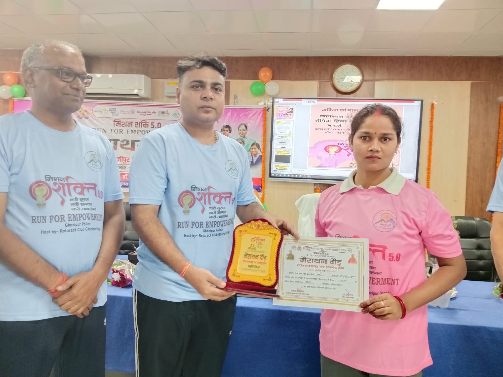 मैराथन में शामिल महिला पुलिस कर्मियों, छात्राओं और महिलाओं को प्रशस्ति पत्र देकर सम्मानित किया गया। कार्यक्रम को सफल बनाने में सामाजिक सरोकारों के प्रति समर्पित संस्था रोटरैक्ट क्लब गाजीपुर एवं उसके पदाधिकारियों का सराहनीय योगदान रहा।