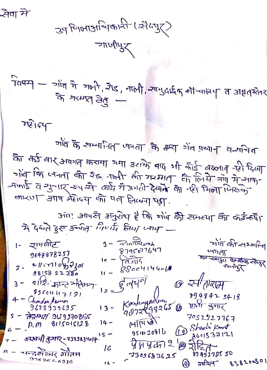 गाजीपुर।गाजीपुर जिलेके सैदपुर तहसील के खुजरा ग्राम सभा में ग्रामीणों ने ग्राम प्रधान पर काम न करने का आरोप लगाया है। ग्रामीणों ने एसडीएम सैदपुर और जिला अध्यक्ष गाजीपुर को एक पत्रक डाक के माध्यम से भेजा है, जिसमें जल निकासी की समस्या और नालियों की मरम्मत न होने की शिकायत की गई है।