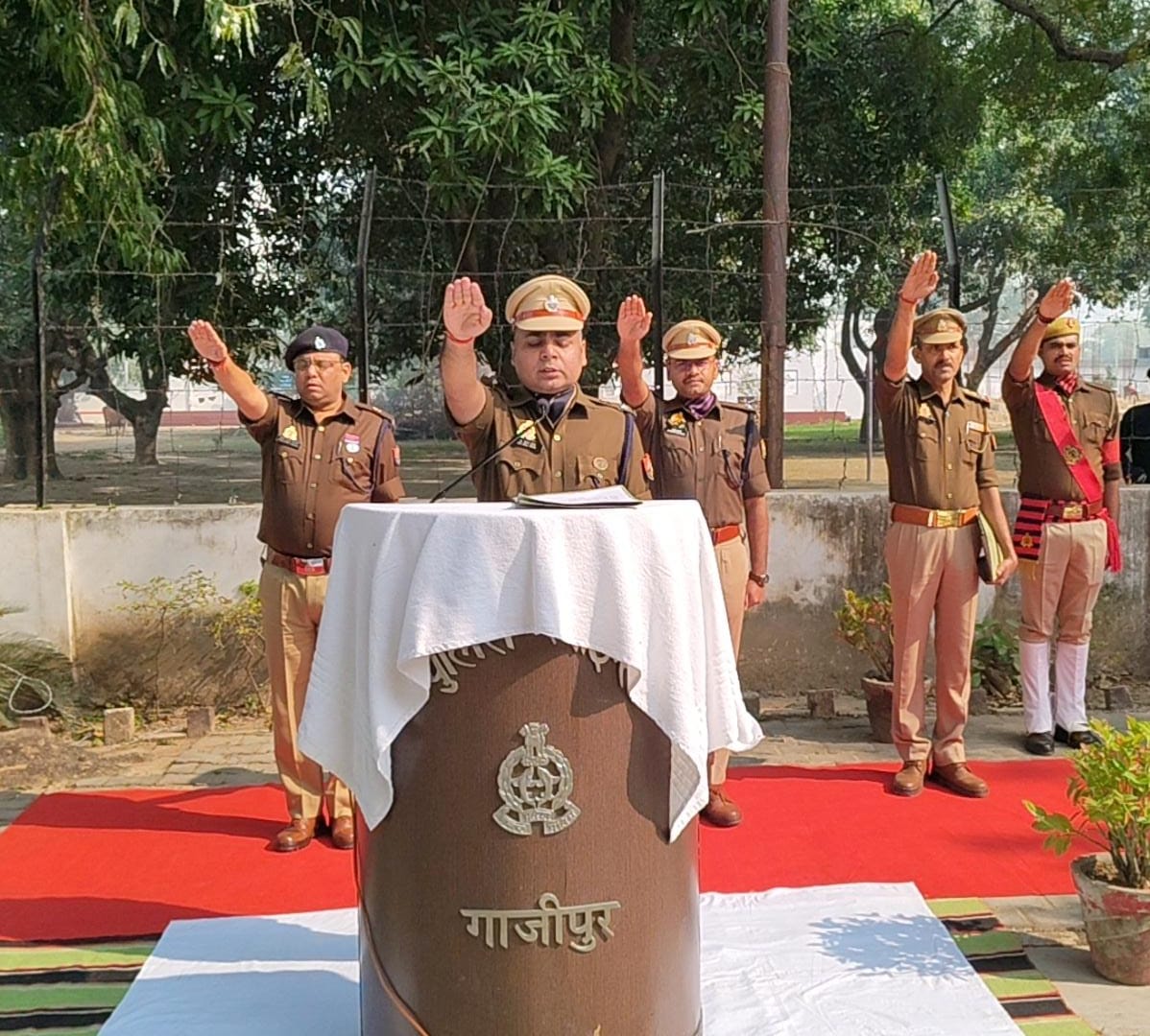 गाजीपुर: आज संविधान दिवस के अवसर पर गाजीपुर पुलिस लाइन के क्वार्टर गार्द में एक विशेष कार्यक्रम आयोजित किया गया। इस दौरान श्रीमान् पुलिस अधीक्षक महोदय, गाजीपुर ने पुलिस विभाग के समस्त अधिकारियों और कर्मचारियों को सामूहिक रूप से संविधान की प्रस्तावना का पाठ कराया और राष्ट्र की एकता और अखंडता बनाए रखने की शपथ दिलाई।पुलिस अधीक्षक ने इस अवसर पर उपस्थित सभी लोगों को संबोधित करते हुए कहा कि 26 नवंबर 1949 का दिन स्वतंत्र भारत के इतिहास में अत्यंत महत्वपूर्ण है, क्योंकि इसी दिन संविधान बनकर तैयार हुआ था और उसे अपनाया गया था। उन्होंने बताया कि संवैधानिक मूल्यों के प्रति नागरिकों में सम्मान की भावना को बढ़ावा देने के लिए ही हर साल 26 नवंबर को संविधान दिवस मनाया जाता है।