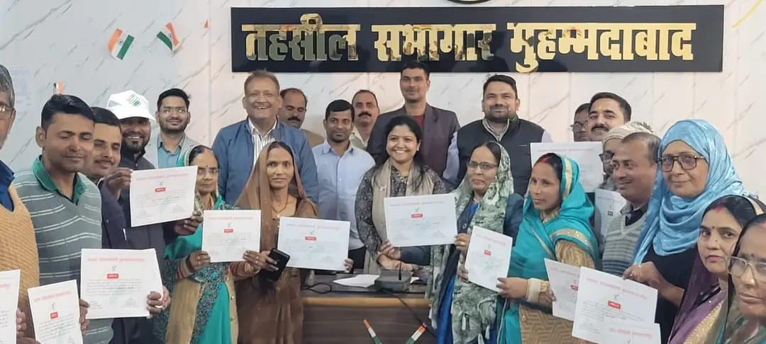 उप जिलाधिकारी ने बी0एल0ओ0 शाहेनुर अंसारी, मो0 जफर, कुबेर सिंह यादव, मोहन प्रधान, रामदुलायी, पुष्पादेवी गुप्ता, विजय राम बिन्द, शिवान्दराय, रूबिना गुलनार, जासीम अंसारी, दिग्विजय पाण्डेय, अशोक सिंह, संजू देवी, नवीनचंद्र श्रीवास्तव, अनिता सिंह, सुनिता देवी, निर्मला, विनिता राय, मनीष यादव एवं पंकज कुमार राय द्वारा अपने बूथ के मतदाताओं को गणना प्रपत्र वितरित कर समयबद्ध तरीके से प्रपत्र एकत्रित किए तथा उन्हें बीएलओ ऐप पर पूर्णतः डिजिटाइज कर महत्वपूर्ण उपलब्धि हासिल की। उनके इस उत्कृष्ट कार्य की सराहना करते हुए उप जिलाअधिकारी मुहम्मदाबाद हर्षिता तिवारी ने उन्हें प्रशस्ति पत्र प्रदान कर सम्मानित किया।इस अवसर पर उप जिलाधिकारी ने निर्देश दिए कि विशेष प्रगाढ़ पुनरीक्षण कार्यक्रम से जुड़े सभी बीएलओ एवं संबंधित कार्मिक आपसी समन्वय के साथ मतदाताओं से गणना प्रपत्र प्राप्त कर निर्धारित समयसीमा में उनका शत-प्रतिशत डिजिटाइजेशन सुनिश्चित करें।