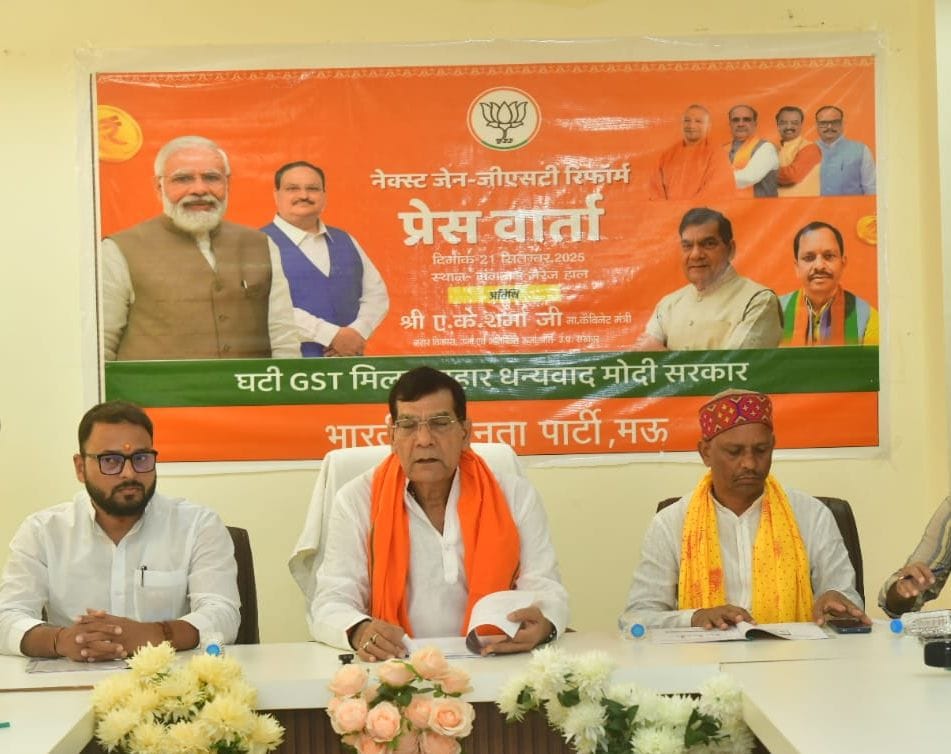 मऊ-नगर विकास एवं ऊर्जा मंत्री ए. के. शर्मा ने मंगलम गेस्ट हाउस में जीएसटी सुधार पर प्रेस कॉन्फ्रेस के माध्यम से इसके जनहितार्थ आयामों पर बल दिया। उन्होंने बताया कि प्रधानमंत्री जी के नेतृत्व में सरकार ने मध्यम वर्ग के लिए रणनीतिक रूप से प्रभावशाली बदलाव किए और उन्हें सफलता पूर्वक लागू किया जिससे उनके जीवन में सुगमता आएगी और वे अब अधिक सशक्त होंगे। नेक्स्ट-जेन जीएसटी जन-प्रथम सुधार मील का पत्थर साबित होगा।उन्होंने बताया कि सुलभ दाम से हर परिवार की मुस्कान बढेगी और रोजमर्रा की जरूरतों पर रोजाना बचत होगी।