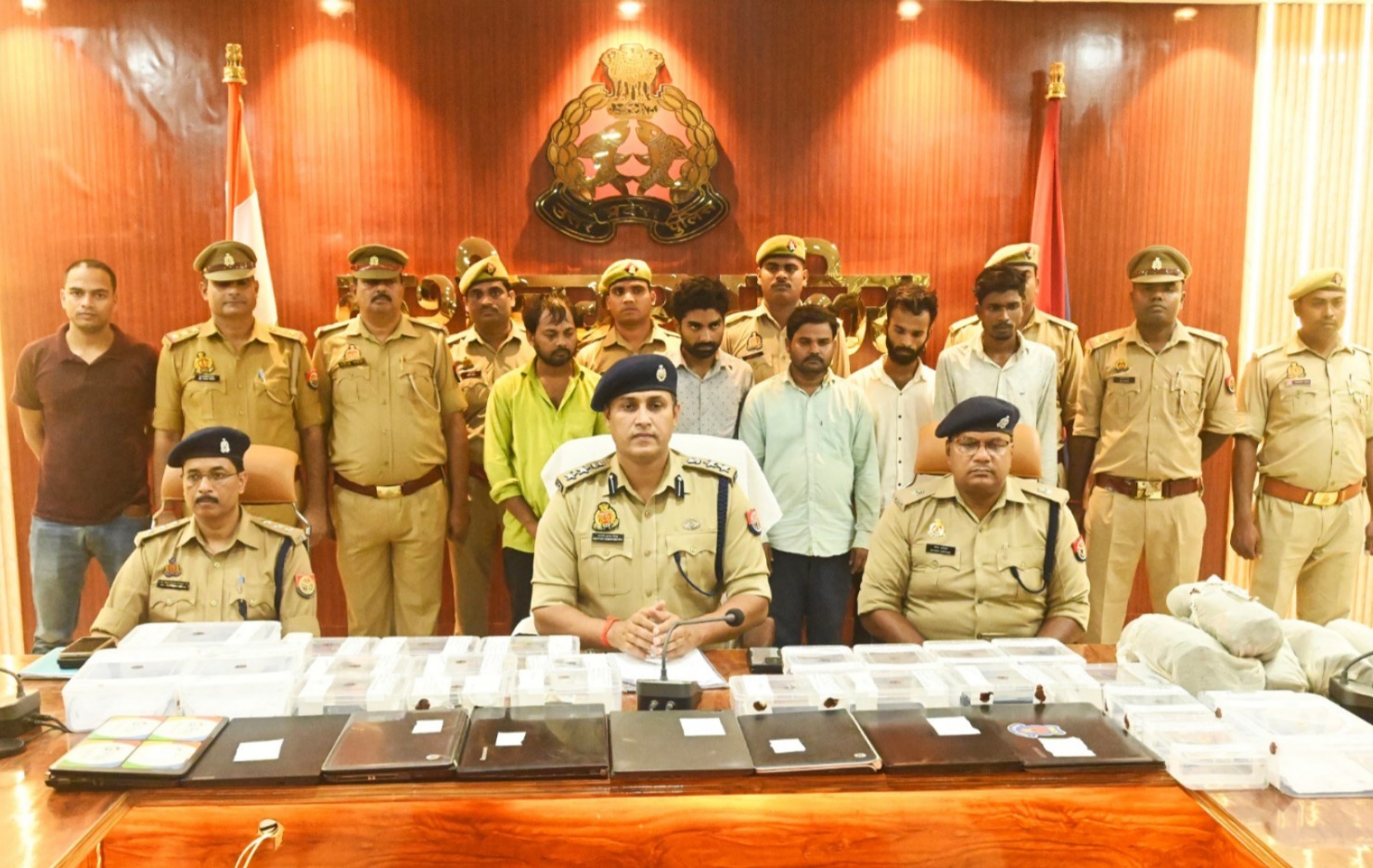 कुशीनगर । पुलिस अधीक्षक कुशीनगर संतोष कुमार मिश्रा के निर्देशन एवं अपर पुलिस अधीक्षक कुशीनगर निवेश कटियार के पर्वेक्षण व क्षेत्राधिकारी तमकुहीराज कुशीनगर राकेश प्रताप सिंह के नेतृत्व मे अपराध एवं अपराधियों के विरुध्द चलाये जा रहे अभियान के क्रम में आज दिनांक 04.08.2025 को थाना रविन्द्रनगर धूस तथा साइबर सेल की संयुक्त टीम द्वारा फर्जी जन्म प्रमाण पत्र व आधारकार्ड बनाने वाले एक संगठित गिरोह का पर्दाफाश करते हुए कुल 05 अभियुक्तों गिरफ्तार किया गया है। अभियुक्तों के कब्जे से अपराध में प्रयुक्त 8 लैपटॉप (विभिन्न कंपनियों के), 6 मल्टीमीडिया व एंड्रॉयड मोबाइल फोन (विभिन्न कंपनियों के), 10 कूट रचित सरकारी मुहरें, 19 फर्जी आधार कार्ड, 15 कूट रचित जन्म प्रमाण पत्र, तथा अपराध से अर्जित 5100/- रुपये नकद (भारतीय मुद्रा) बरामद किए गए। गिरफ्तारी व बरामदगी के आधार पर अग्रिम विधिक कार्यवाही की जा रही है।