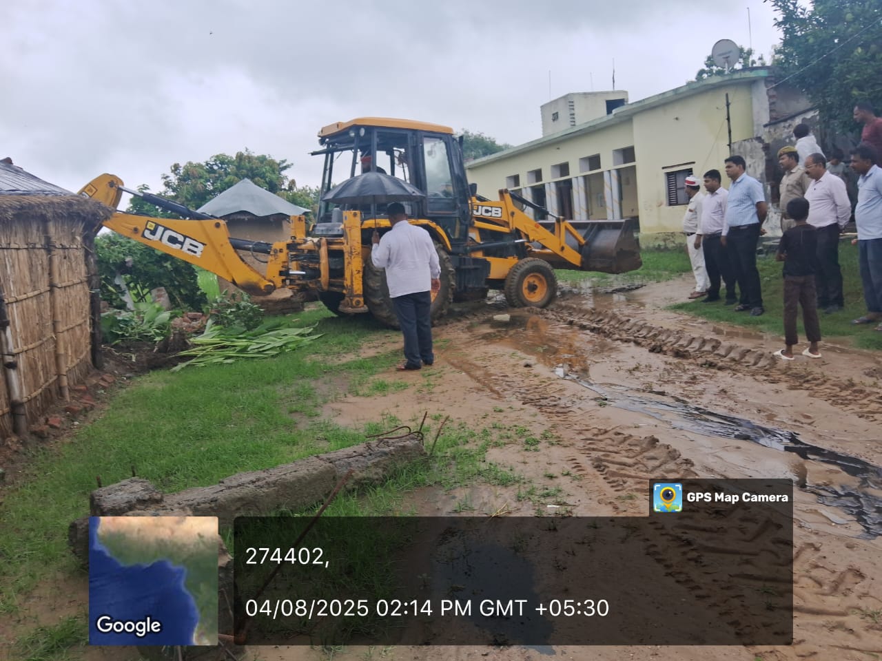 कुशीनगर । कसया तहसील अंतर्गत ग्रामसभा धनौजी में गाँव के खलिहान पर अतिक्रमण करके बनाए गए पक्के तीन मकानों को प्रशासन ने बुलडोजर से ध्वस्त कर जमीन को अतिक्रमणमुक्त करा दिया।