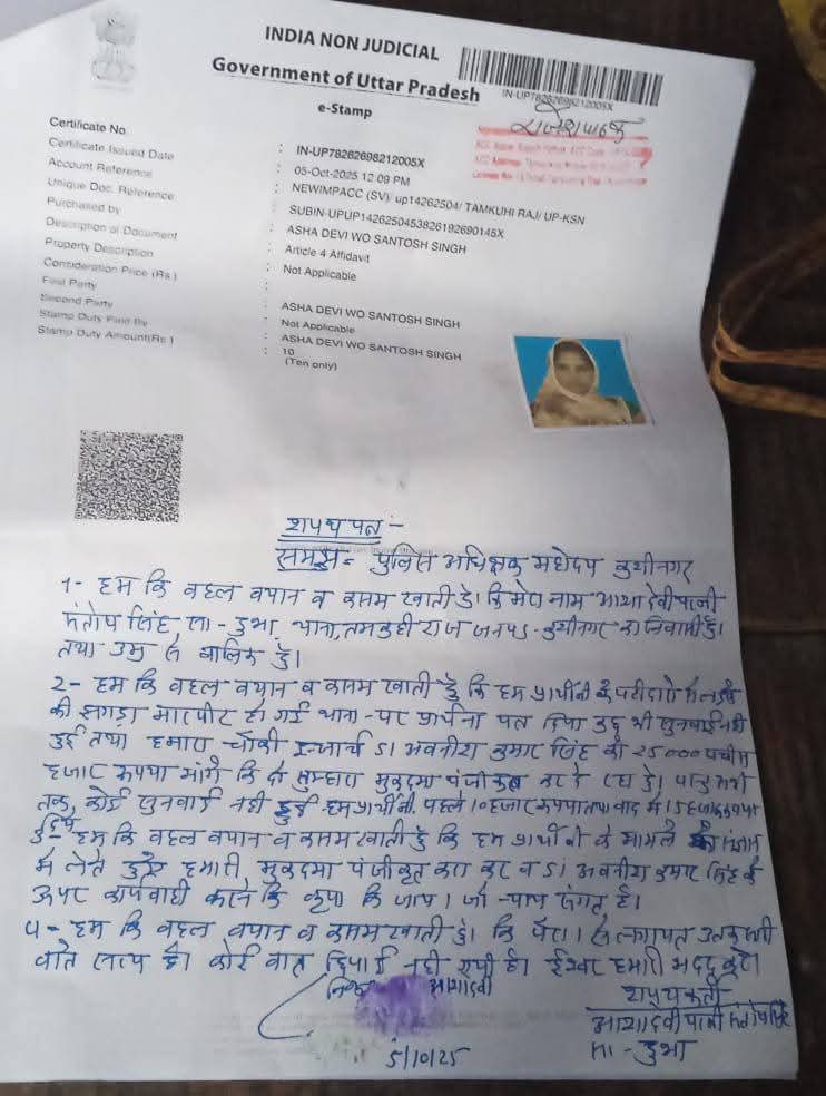 आशा देवी ने बताया कि उनके बेटे को कुछ दिन पहले स्थानीय लोगों के विवाद में शामिल होने के बाद पीटा गया था। जब उन्होंने पुलिस चौकी में शिकायत दर्ज कराई, तो उन्हें बताया गया कि मामला मामूली है और उसे दर्ज नहीं किया जाएगा। इसके बाद, चौकी प्रभारी ने उनसे 25 हजार रुपये देने की बात कही। आशा देवी के अनुसार, पैसे देने के बाद भी मामले में कोई कानूनी कार्रवाई नहीं हुई और आरोपी पक्ष पर कोई कार्यवाही नही की गयी।