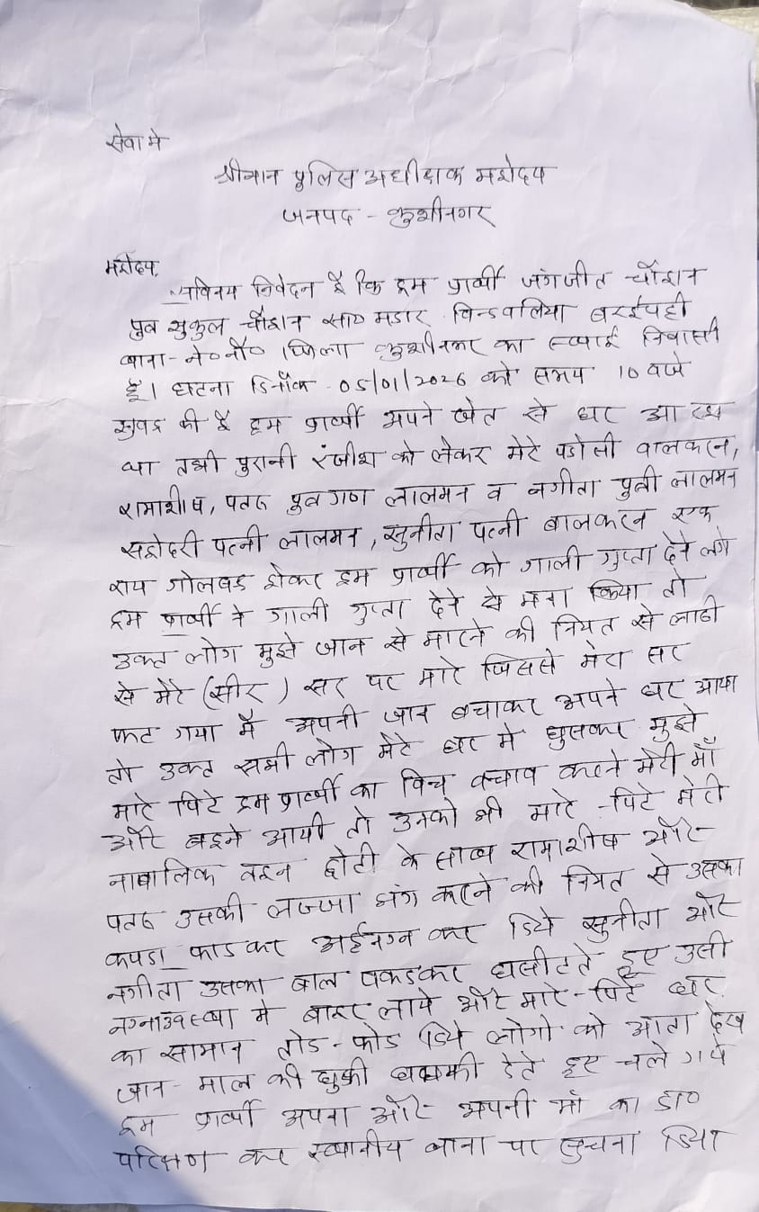 कुशीनगर ।नेबुआ नौरंगिया थाना क्षेत्र के मदारबिंदवलिया गांव निवासी सुखल चौहान के साथ पुरानी रंजिश को लेकर दोबारा मारपीट का मामला प्रकाश में आया है। आरोप है कि बीते 30 जनवरी को बाजार से घर लौटते समय रास्ते में पट्टीदारों ने घेरकर सुखल की पिटाई कर दी, जिससे उनका हाथ टूट गया। घायल अवस्था में परिजनों द्वारा उन्हें उपचार हेतु अस्पताल पहुंचाया गया।
