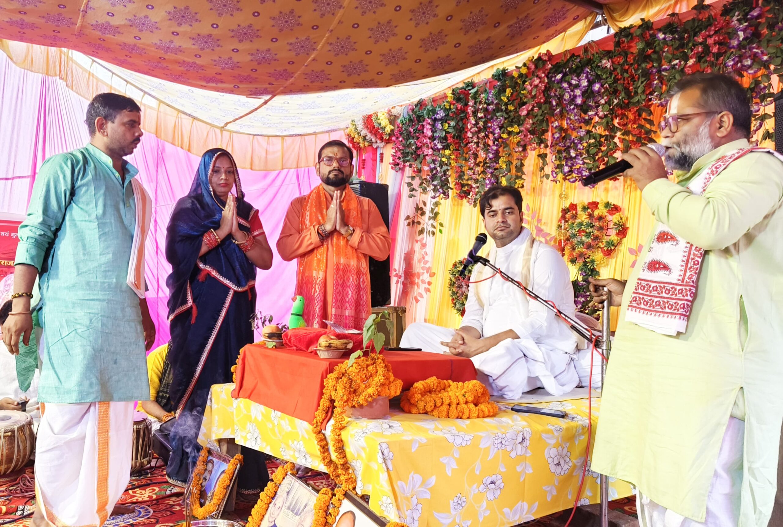 स्थानीय नगरपालिका परिषद के वार्ड न 15 वीर सावरकर नगर के निवासी मुख्य यजमान सेवानिवृत्त प्रवक्ता मधुसूदन मिश्र एवं उनकी धर्मपत्नी नगावली के निज निवास पर चल रहे सात दिवसीय श्रीमद्भागवत कथा के छठवें दिन उपस्थित श्रोतागणों को कथावाचक अनुराग कृष्ण शास्त्री ने रुक्मिणी,सत्यभामा,जामवंती आदि आठ रानियों के संग विवाह का वितारपूर्वक वर्णन किये। जिसे सुन श्रोतागण भावविभोर हो उठे।उन्होंने ने कहा कि जिसे वास्तविक प्रेम होता है उसके अंदर वासना का कोई स्थान नहीं होता है क्योंकि वह प्रेम की उच्चवस्था में अभिभूत हों जाता है। उन्होंने कहा कि जब आपको अपने इष्ट के प्रति वास्तविक प्रेम होता है तो आपको भगवत प्राप्ति के मार्ग को सुगम कर देता है। उन्होंने कंस वध,जरासंध से युद्ध एवं द्वारिका के नवनिर्माण का भी वितारपूर्वक वर्णन किया। मीरा के ठाकुरजी के प्रति अनन्य प्रेम भाव का भी बहुत ही मार्मिक वर्ण न किया।
